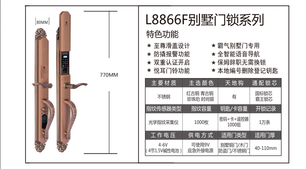L8866F青古銅別墅鎖技術(shù)參數(shù)