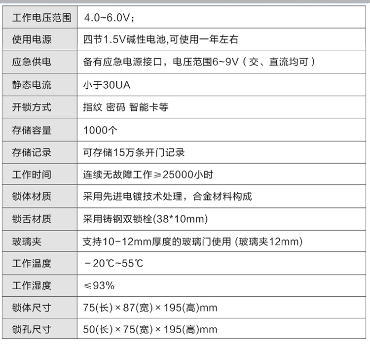 智能鑰匙容量:卡/密碼200組;指紋1000枚