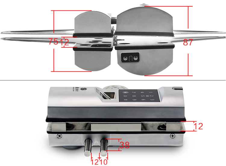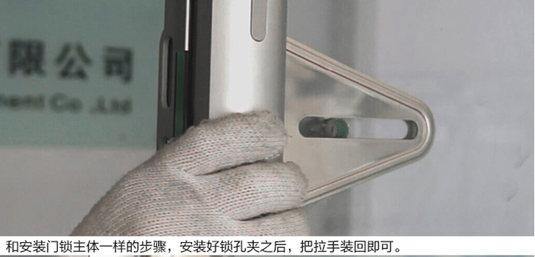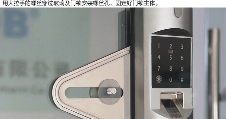 指紋門鎖適合使用10-12mm的玻璃門安裝,與玻璃大拉手配套使用安裝方式(如圖所示意)